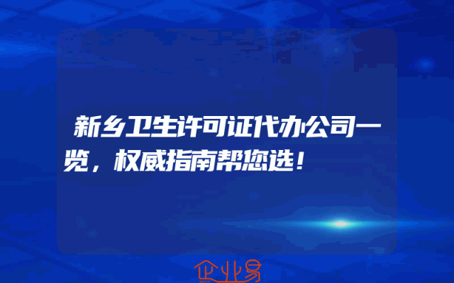 - 新乡卫生许可证代办公司一览,权威指南帮您选!