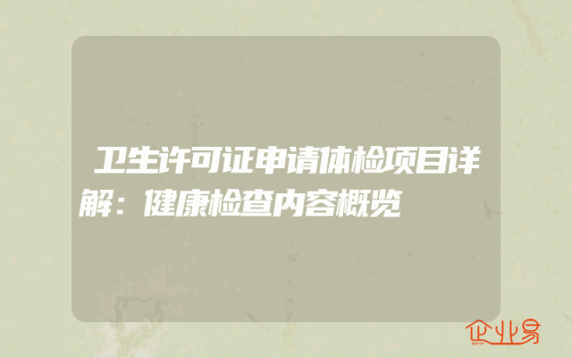 - 卫生许可证申请体检项目详解:健康检查内容概览