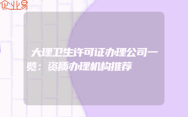 - 大理卫生许可证办理公司一览:资质办理机构推荐