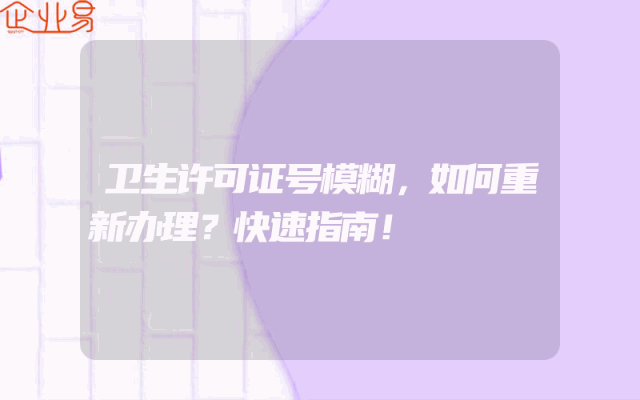 - 卫生许可证号模糊,如何重新办理?快速指南!