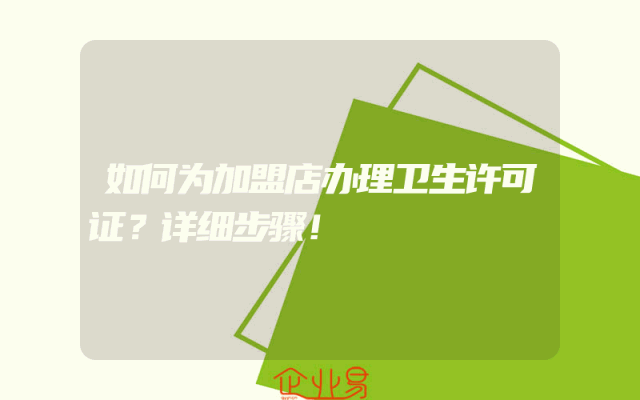 - 如何为加盟店办理卫生许可证?详细步骤!