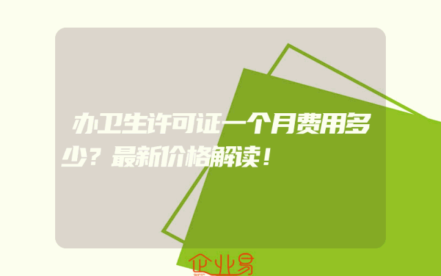 - 办卫生许可证一个月费用多少?最新价格解读!