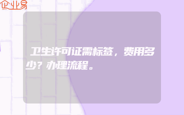 - 卫生许可证需标签,费用多少?办理流程解析一、什么是卫生许可证卫生许可证是证明企业或个人符合卫生法规要求的证件,是开展食品、餐饮、医疗等与民众健康密切相关的行业的必备证件。为了确保公共场所和食品行业的卫生安全,经营者需要办理卫生许可证,并在经