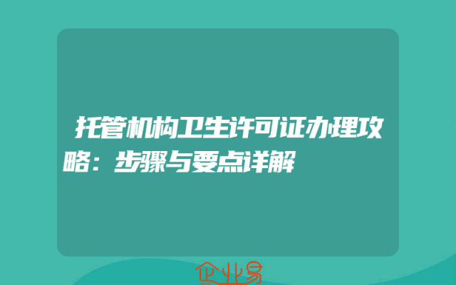 - 托管机构卫生许可证办理攻略:步骤与要点详解