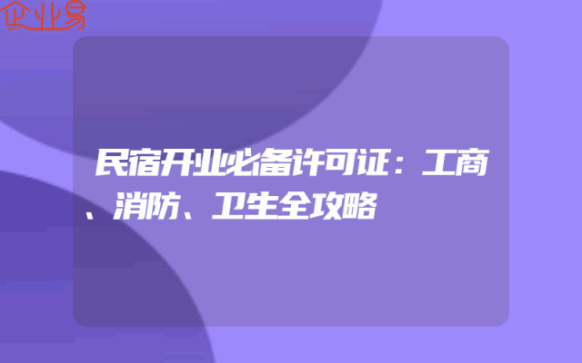 - 民宿开业必备许可证:工商、消防、卫生全攻略
