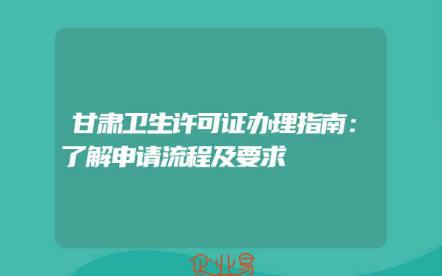 - 甘肃卫生许可证办理指南:了解申请流程及要求
