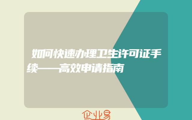 - 如何快速办理卫生许可证手续——高效申请指南了解卫生许可证及其重要性卫生许可证是企业经营的重要资质之一,对于食品、餐饮、美容、医疗等与公众健康密切相关的行业尤为重要。随着市场的发展和监管要求的提高,办理卫生许可证已成为企业合法经营的必备条件之
