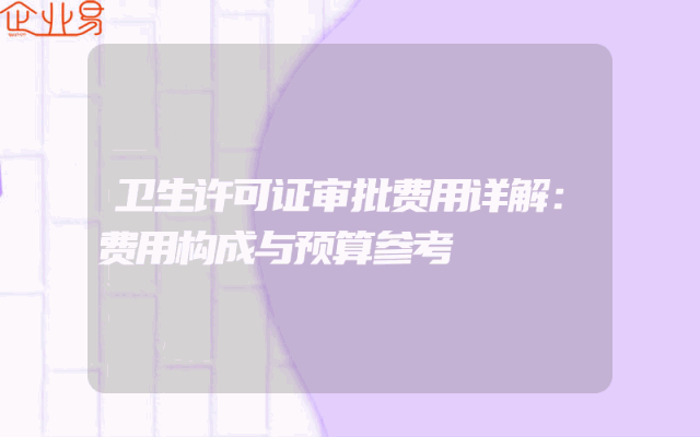 - 卫生许可证审批费用详解:费用构成与预算参考
