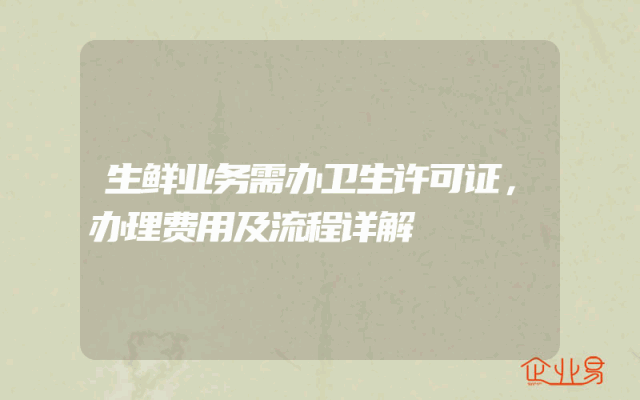 - 生鲜业务需办卫生许可证,办理费用及流程详解