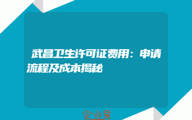 - 武昌卫生许可证费用:申请流程及成本揭秘