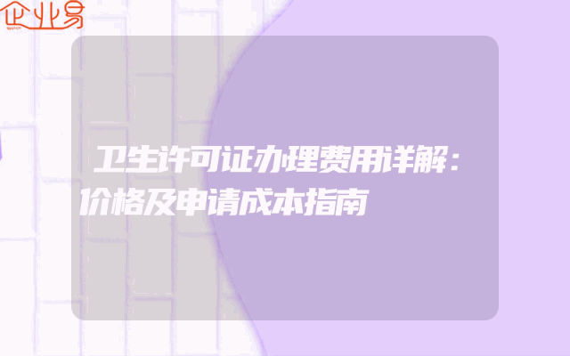 - 卫生许可证办理费用详解:价格及申请成本指南
