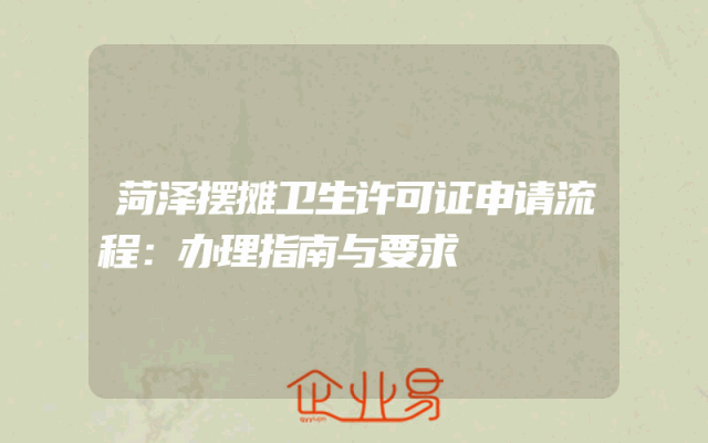 - 菏泽摆摊卫生许可证申请流程:办理指南与要求