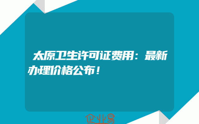 - 太原卫生许可证费用:最新办理价格公布!