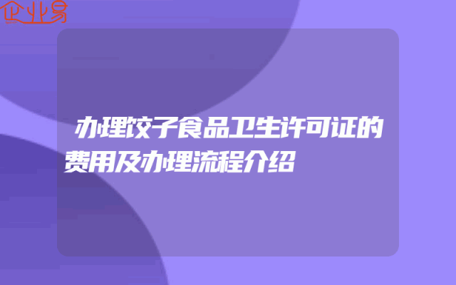 - 办理饺子食品卫生许可证的费用及办理流程介绍