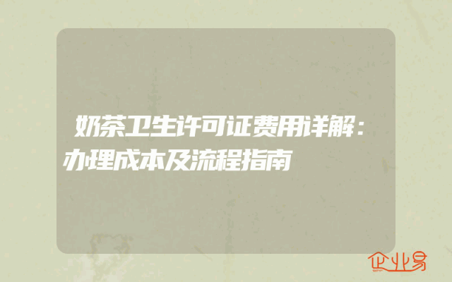 - 奶茶卫生许可证费用详解:办理成本及流程指南