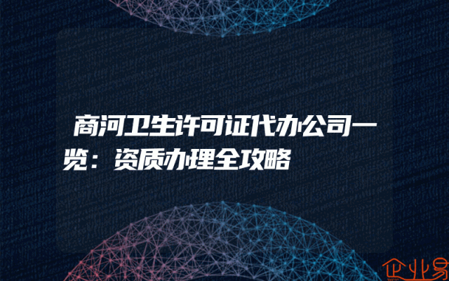 - 商河卫生许可证代办公司一览:资质办理全攻略