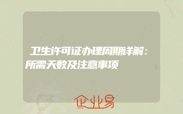 - 卫生许可证办理周期详解:所需天数及注意事项