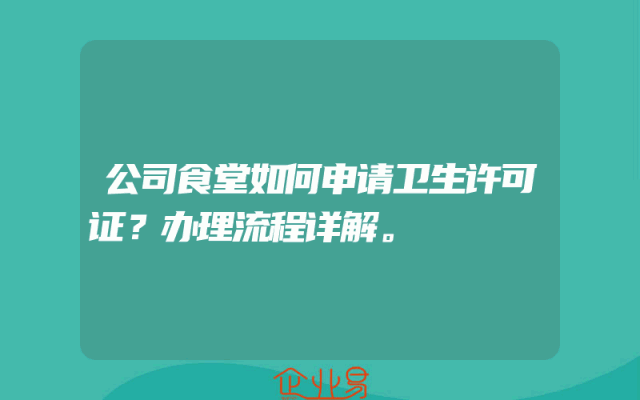 - 公司食堂如何申请卫生许可证?办理流程详解。