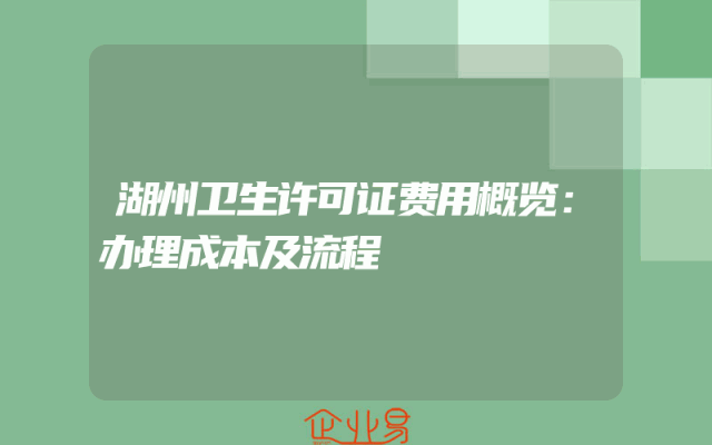 - 湖州卫生许可证费用概览:办理成本及流程解析一、湖州卫生许可证办理背景在湖州市开展涉及公共卫生领域的业务,如食品生产、餐饮服务等,必须依法取得卫生许可证。该证件是保障公众健康的重要措施,同时也是企业合法经营的凭证。本文将详细解析湖州卫生许可证