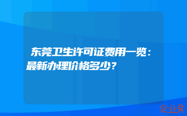 - 东莞卫生许可证费用一览:最新办理价格多少?