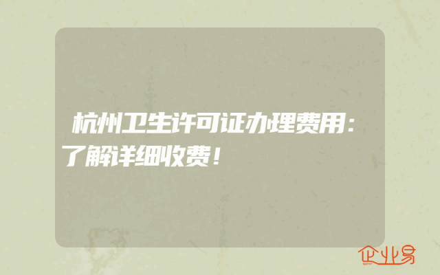 - 杭州卫生许可证办理费用解析:了解详细收费杭州卫生许可证办理概述杭州作为经济发达的城市,企业众多,对于卫生许可证的办理也极为重视。卫生许可证是确保企业卫生安全的重要保障,涉及到餐饮、住宿等多个行业。办理费用的组成部分杭州卫生许可证的办