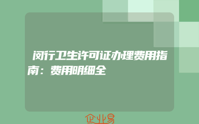 - 闵行卫生许可证办理费用指南:费用明细全解析一、前言在闵行区,无论是新办企业还是已有企业的扩大经营,卫生许可证的办理都是必不可少的环节。对于申请者来说,了解卫生许可证的办理费用是非常重要的一环。本文将详细解析闵行卫生许可证的办理费用,帮助申请