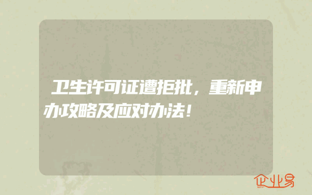 - 卫生许可证遭拒批,重新申办攻略及应对办法!