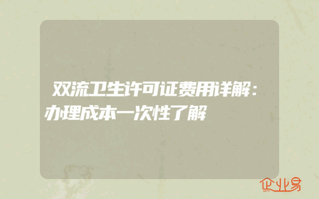 - 双流卫生许可证费用详解:办理成本一次性了解