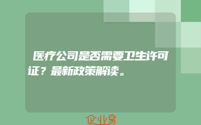- 医疗公司是否需要卫生许可证?最新政策解读。