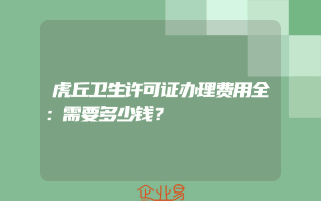 - 虎丘卫生许可证办理费用全:需要多少钱?