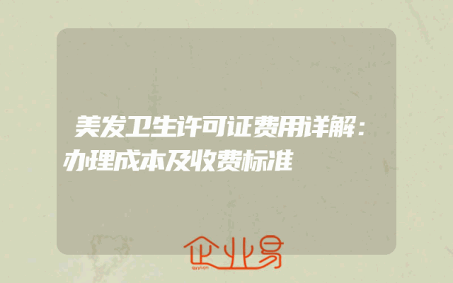 - 美发卫生许可证费用详解:办理成本及收费标准