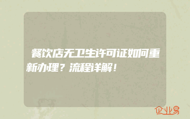- 餐饮店无卫生许可证如何重新办理?流程详解!