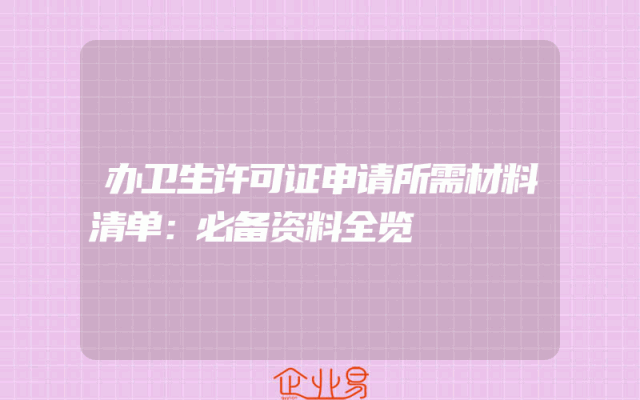 - 办卫生许可证申请所需材料清单:必备资料全览