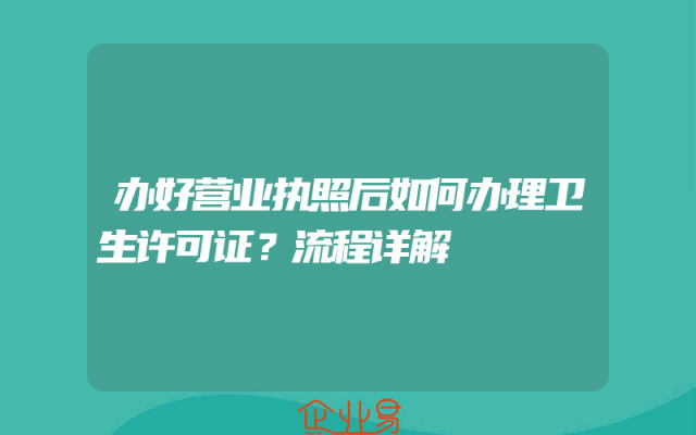 - 办好营业执照后如何办理卫生许可证?流程详解