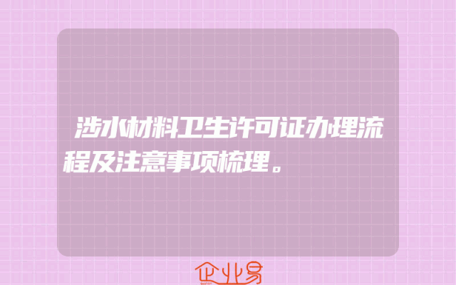 - 涉水材料卫生许可证办理流程及注意事项梳理。