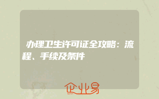 - 办理卫生许可证全攻略:流程、手续及条件