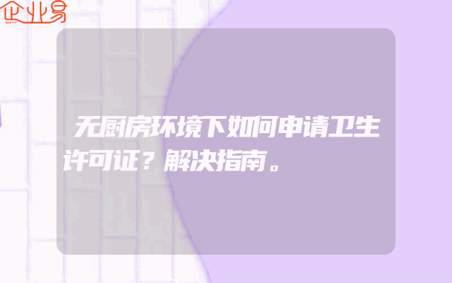 - 无厨房环境下如何申请卫生许可证?解决指南。