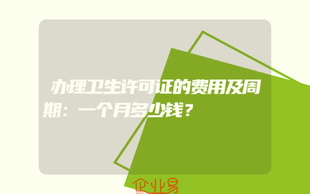 - 办理卫生许可证的费用及周期:一个月多少钱?