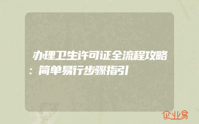 - 办理卫生许可证全流程攻略:简单易行步骤指引