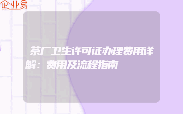 - 茶厂卫生许可证办理费用详解:费用及流程指南