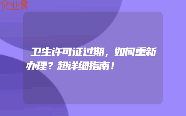 - 卫生许可证过期,如何重新办理?超详细指南!