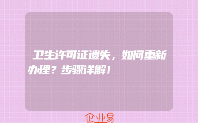 - 卫生许可证遗失,如何重新办理?步骤详解!