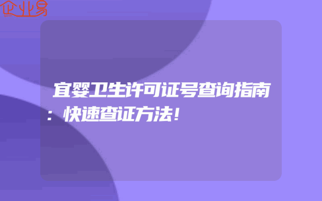 - 宜婴卫生许可证号查询指南:快速查证方法!