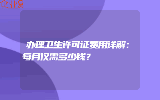 - 办理卫生许可证费用详解:每月仅需多少钱?