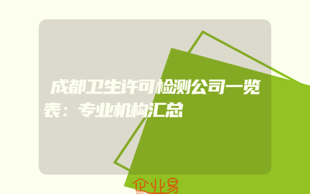 - 成都卫生许可检测公司一览表:专业机构汇总