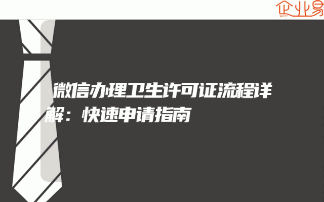- 微信办理卫生许可证流程详解:快速申请指南一、了解卫生许可证的重要性和办理须知卫生许可证是企业开展卫生相关业务的必备证件,涉及到食品、餐饮、公共场所等领域的企业必须申请并获得许可方可运营。如今,为方便企业和公众,许多地方都提供了微信办理卫生许