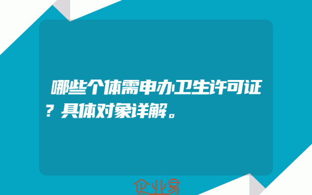 - 哪些个体需申办卫生许可证?具体对象详解。