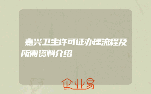 - 嘉兴卫生许可证办理流程及所需资料介绍