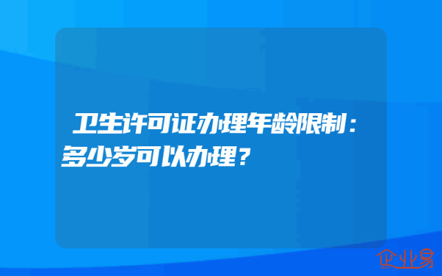 - 卫生许可证办理年龄限制:多少岁可以办理?