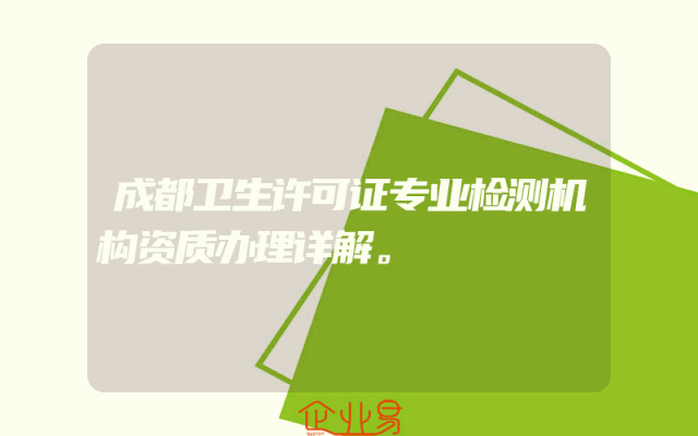 - 成都卫生许可证专业检测机构资质办理详解一、前言在成都地区,从事卫生检测的企业必须拥有相应的资质证书,其中卫生许可证是必不可少的一项。本文将详细解读成都卫生许可证专业检测机构的资质办理流程和要求,帮助有意申请的企业了解相关政策和规定。二、资质